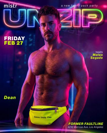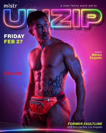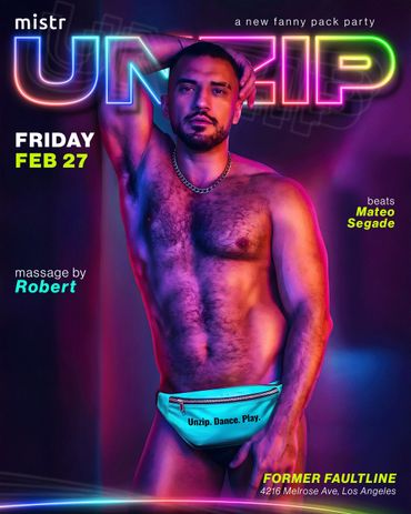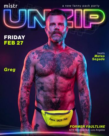 Fanny packs will be available to purchase when you buy your ticket (limited quantities available at the door). You can pair your pack with zippered briefs, jocks, or gear anything with zippers in the right places. Full streetwear isn’t encouraged. Get creative and unzip responsibly.